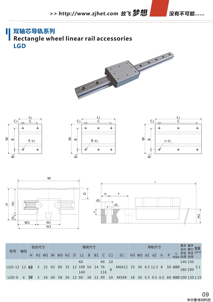 LGD6:  軌寬26,滑塊寬60,總高30,軸芯直徑6,   整支長為4米,超過可進(jìn)行超長對接,